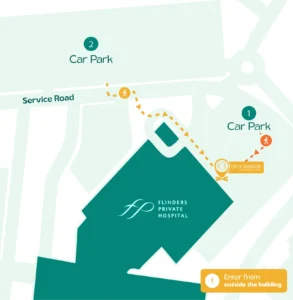 Further information can be provided by our administration team or via the Flinders Private Hospital website map. Flinders Private Hospital Map.