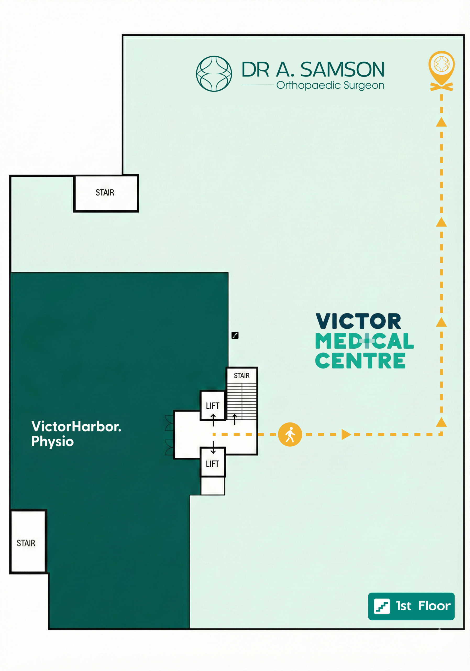 Location: The consulting rooms are located on the first floor in the Specialists’ Consulting Suites within Victor Medical Centre. From the main entrance, take the elevator or stairs to the first floor. Walk into Victor Medical Centre, continue past the reception desk, then turn left and follow the corridor to Dr Samson’s reception area.